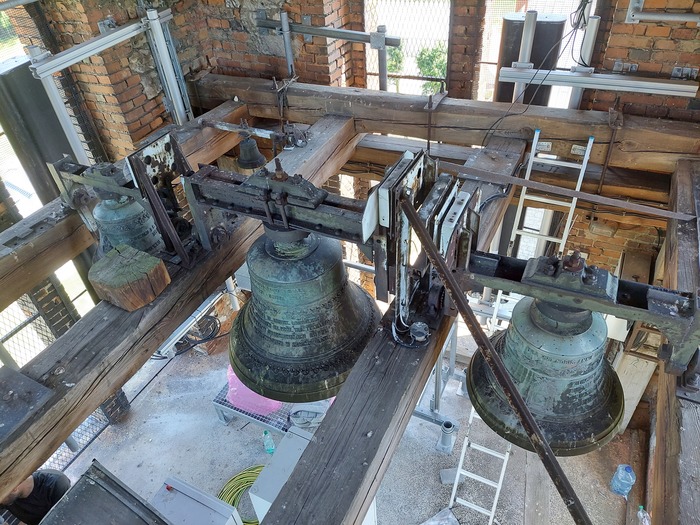 Вот и колокола. Вид сверху. Очень громкие. Колокола автоматические. Звонарь отсутствует