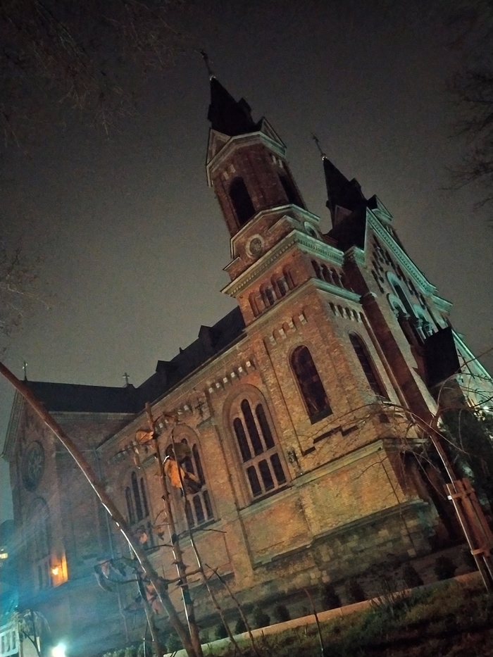 Костел 1901 года, то-ли реставрация, то-ли постройка. Не разобрался, не силен в польском. На одном из колоколов написано 1723 год.