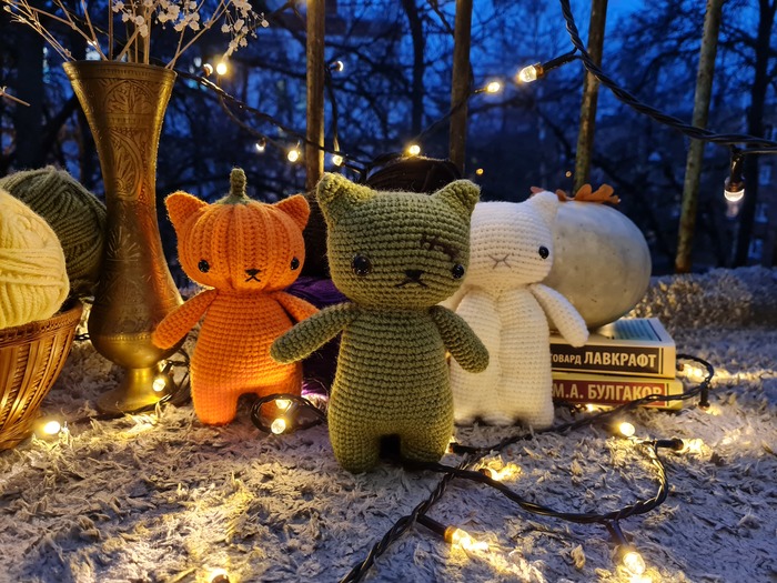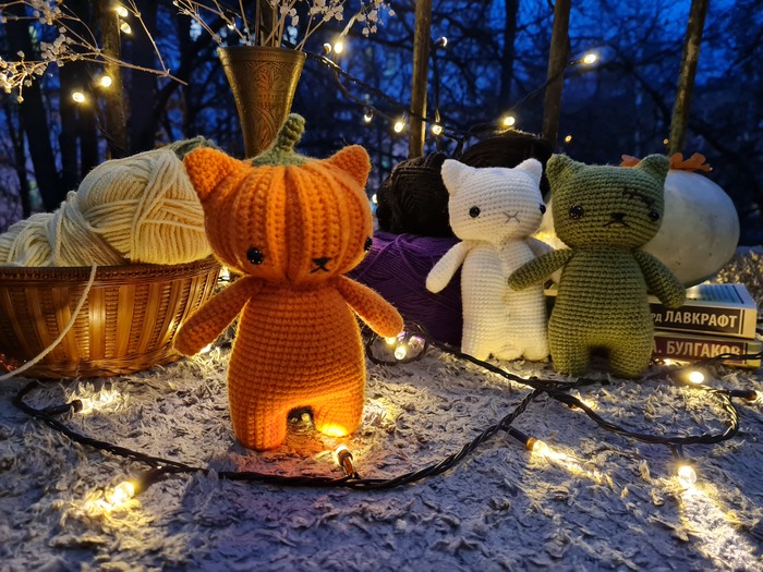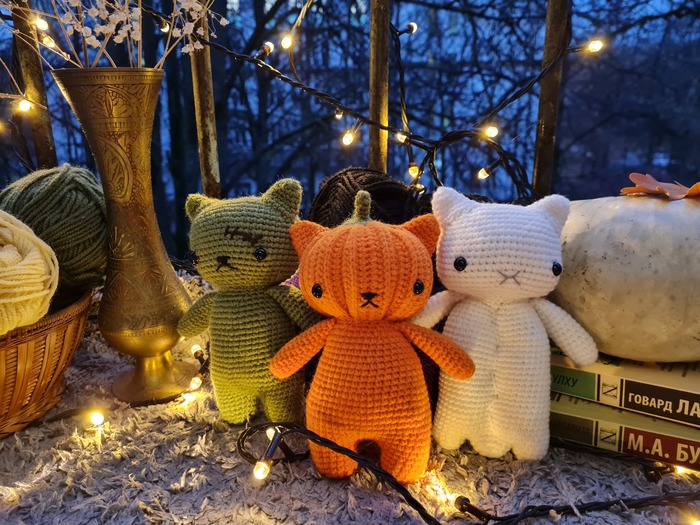 В преддверии Halloween'a я решила связать трёх необычных котика)