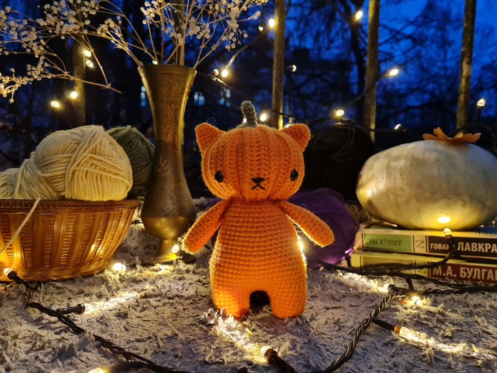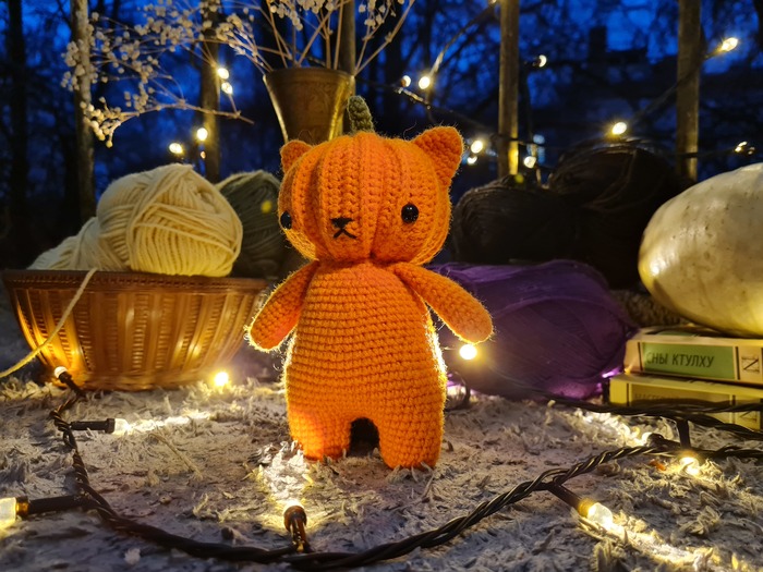 Моим любимцем из этой коллекции стал Котик-тыковка. Этого котика было действительно увлекательно вязать, особенно его голову, хотя именно на нее я потратила больше всего времени.