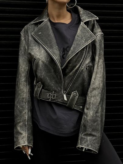 грубой байкерской курткой, разбавив образ перчатками в стиле гранж. Актуальные