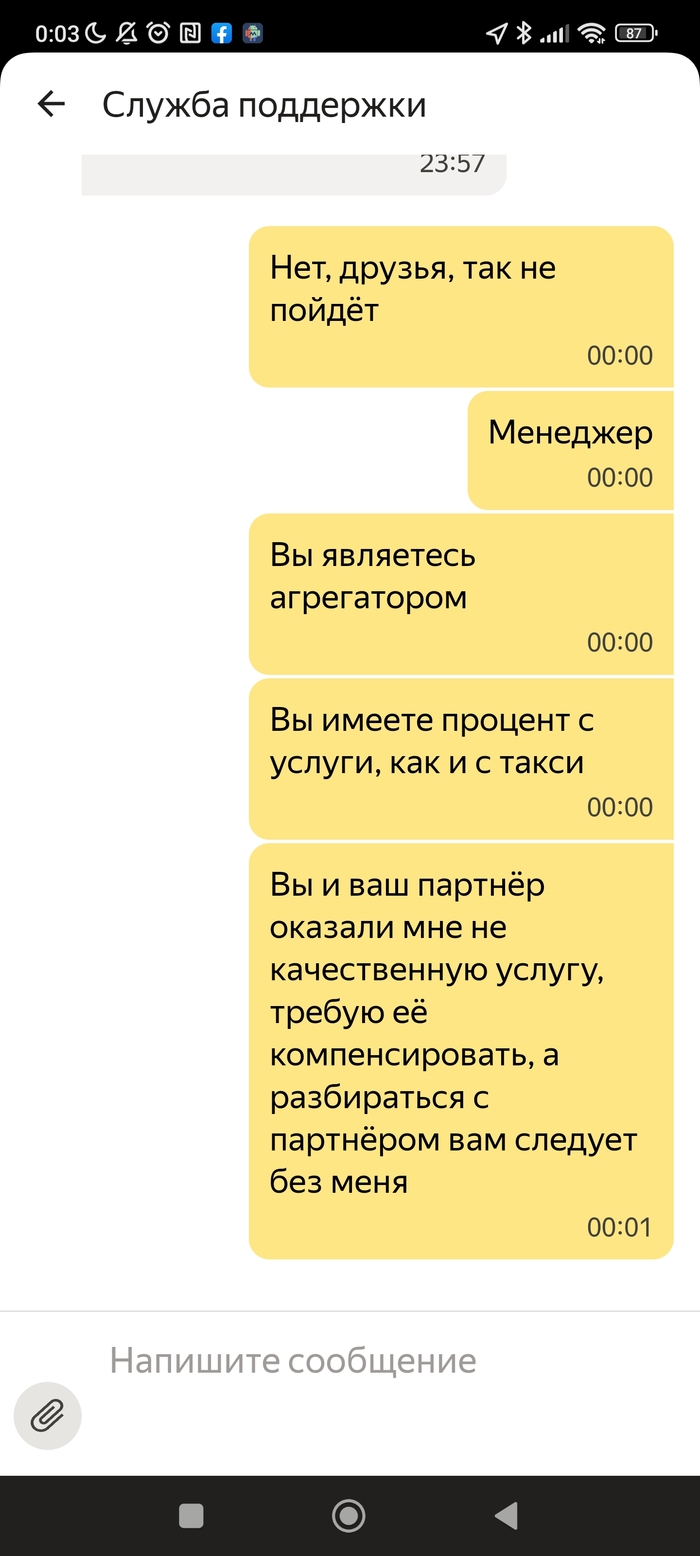 Интересно, Яндекс, не оказав качество услугу, предложил писать в заведение.