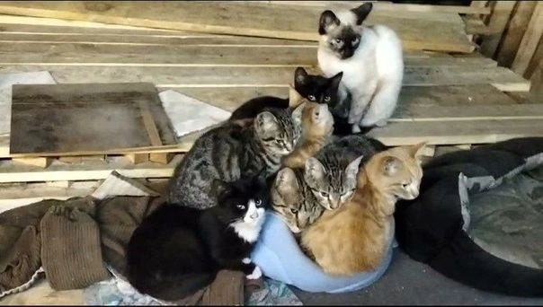 Из снесенного дома 27.11.2023 были спасены 8 пушистых жизней - мама, старший брат и 6 котят около 6 месяцев. Их устроили на платную передержку, но условия были крайне плохие. Одну кошечку довели до тяжелого состояния.😢