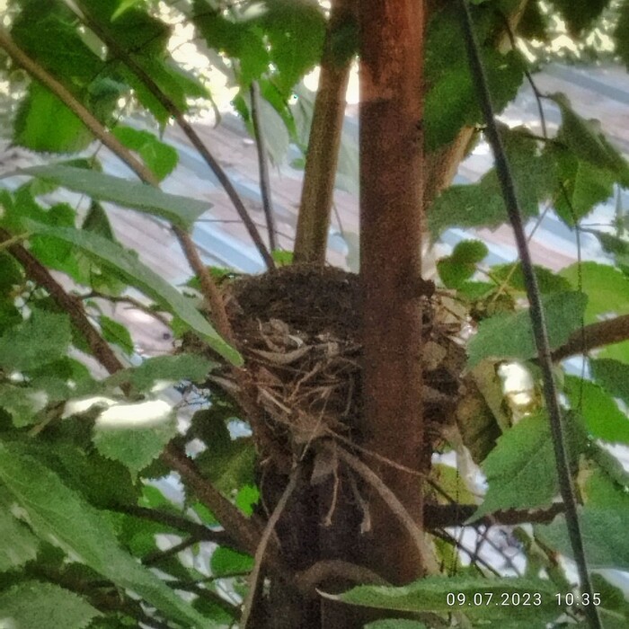 Оказалось прямо у окна появилось гнездо черного дрозда с птенцами. Птенцы и издавали новые звуки, когда прилетала мамаша (папаша) с кормом. О, я уже приготовился записывать на диктофон, вести дневник наблюдений, в разрезе бихевиоризма с параллельными выходами в антропологические гештальты.
