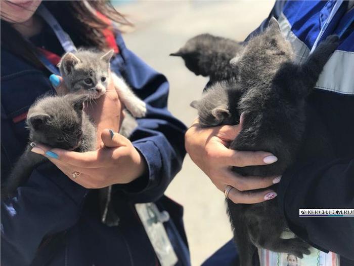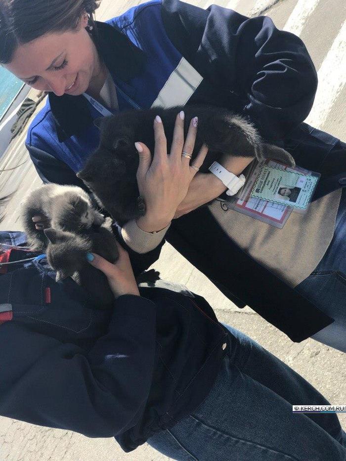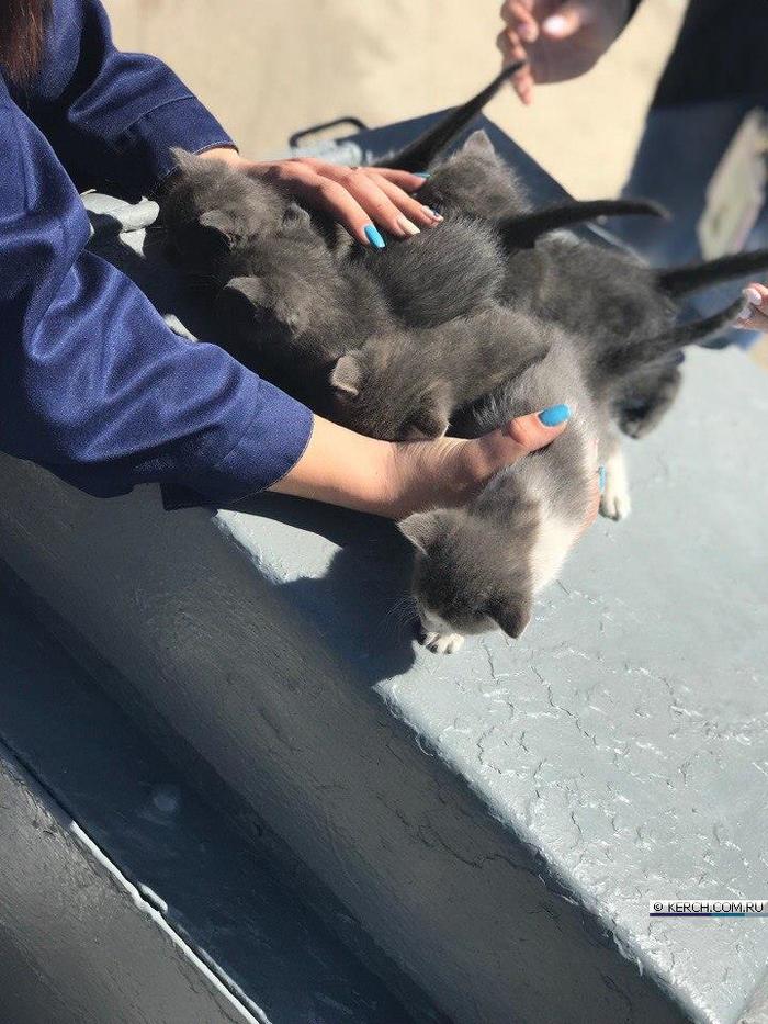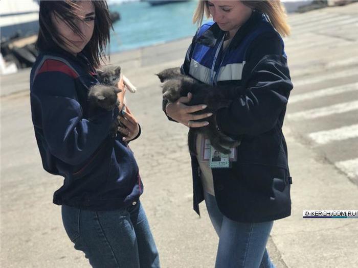 В порту Крым на паромной переправе родилось пятеро котят. Чтобы пристроить пушистиков, прекрасные билетерши устроили им фотосессию на фоне паромов прямо на причале. Туристам предлагают забрать по одному котенку, как память о чудесном отдыхе в Крыму. Обращаться к любому билетеру.