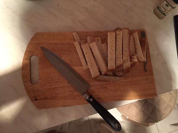 3. Нарезать хлеб на полоски толщиной 1 см.