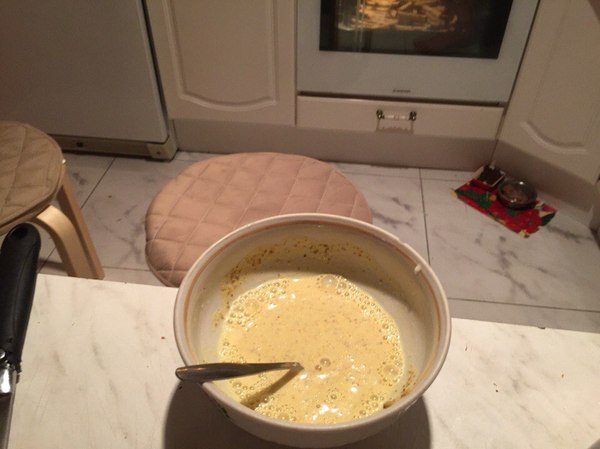 7. Растереть для заправки желток с горчицей, добавить сливки (я брал 20%, но можно и пожирнее, будет соус гуще), хорошо перемешать. Тут я всегда немного экспериментирую. Если соус показался вам слишком жидким, можно добавить майонез. Я иногда добавляю оливковое масло, чуть-чуть, и лимонного сока. Так же не испортите, если добавите специй.