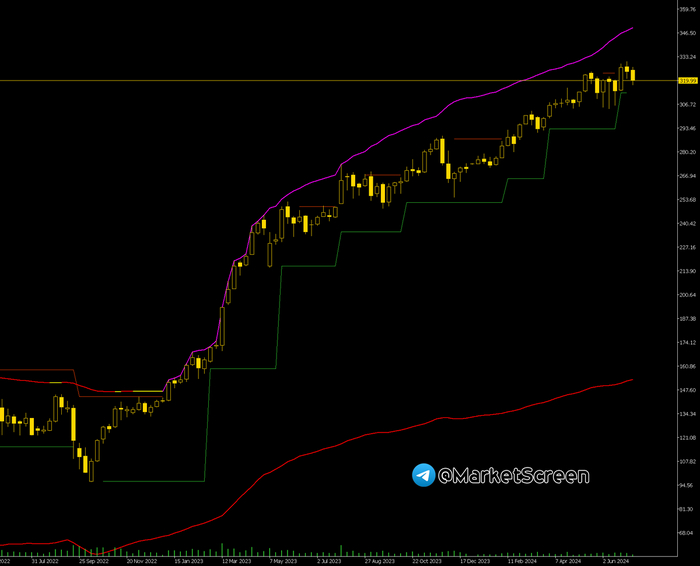 Что касается моих магических кривых, которые показывают всякое на рынке, то завтра будет пробит стоп-уровень «Levels» (так называется мой индикатор), который трейлил восходящее движение на акциях Сбера с лоёв осени 2022 года. Ну если, конечно, мы за день гэп не отыграем. Levels отлично себя проявил - 230% роста.