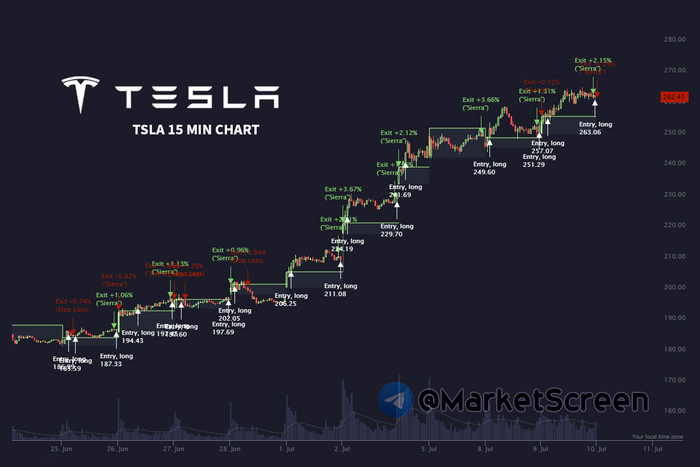 И вот увидел тут одну стратегию. Какие-то буржуи на акциях Теслы крутанули. Стратегия дюже простая, а это хорошо. Обычно, всё работающее - оно простое. Ну как колесо. В чём суть? Пробой 15-минутного диапазона открытия. Т.е. открываются торги, мы сидим на чиле, на расслабоне, смотрим, где будет максимум, а где минимум за первые 15 минут торгов. А дальше, если цена пробивает максимум, который мы обнаружили, то входим в лонг (то есть покупаем акцию) и ставим стоп-лосс на -1%, т.е. если цена упадёт с уровня покупки на 1%, то выходим из позиции. А если не упало, то выходим из позиции за 30 минут до конца торгов.