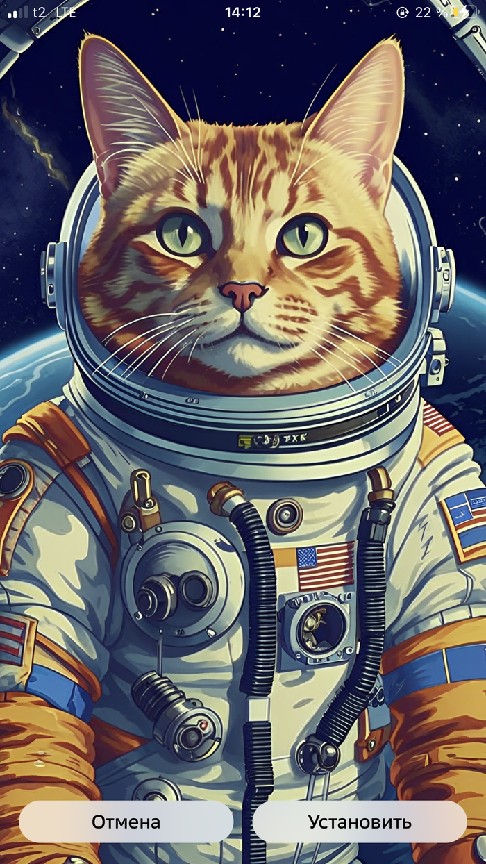Ну нет, зачем мне на заставке кот с американским флагом. Сформировала новый запрос, про котика в скафандре в космосе на фоне ракеты с шевроном России. Получите, распишитесь