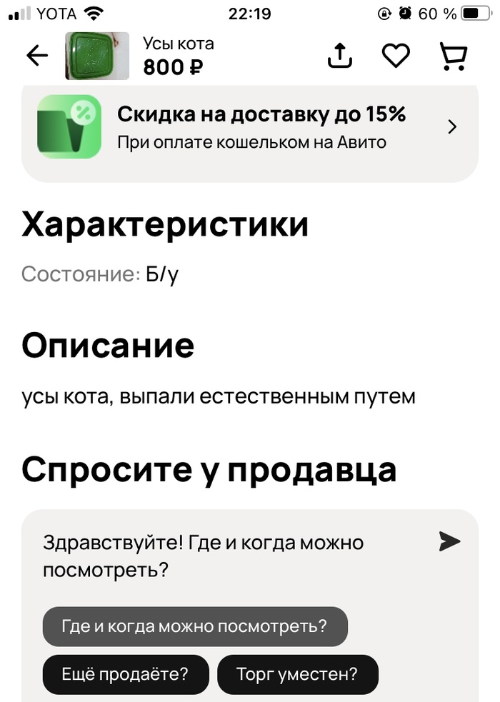 P.s. объявление судя по отзывам фейк, если что, не ведитесь. Просто забавно