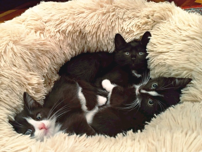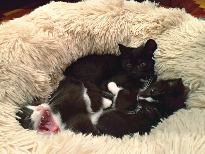 Парнишкам около 2 месяцев, они быстро освоили лоток и быстро научились превращать человеков в розовое сюсюкающее желе.