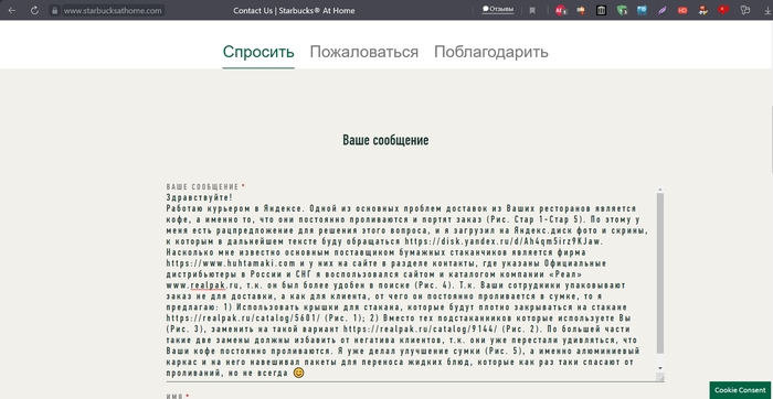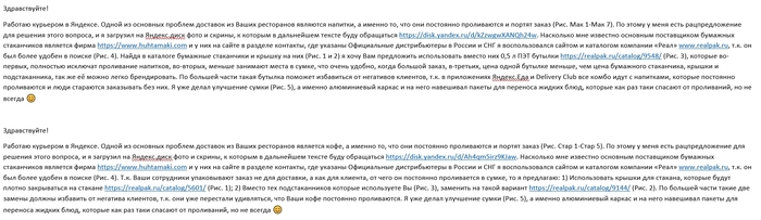 И к слову, не менеджеры же Яндекса, McDonald’s, Starbucks и других ресторанов, которые не могут использовать нормальную упаковку, стоят перед клиентом и извиняются постоянно за пролитый заказ и испорченный, что в свою очередь не приятно, как и клиенту, так и курьеру. И как говорил выше, сколько не жалуйся, сколько не заполняй всяких форм, эти проблемы существуют с тех времён, как появилась доставка.