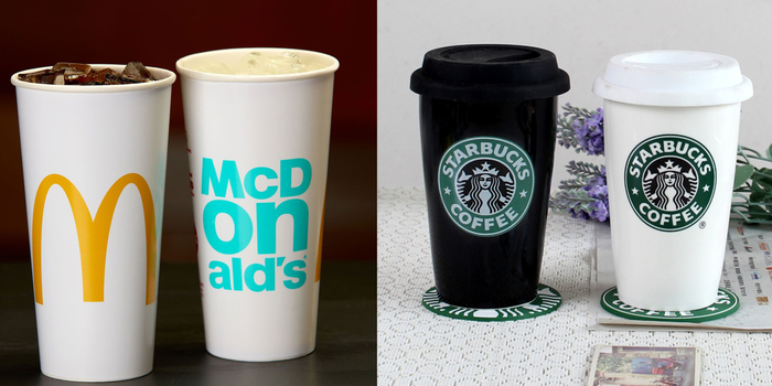 И сам текст, верхний для McDonald’s, нижний Starbucks