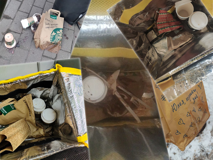 А вот Starbucks придётся уже потраться на моё рацпредложение, если они хотят улучшить качество доставки 😊. Они используют самые простые бумажные подстаканники и упаковывают заказ не как для доставки, а как для клиента, и при переноске их в сумке, когда твой маршрут может пролегать через переходы, подъёмы, спуски и т.д. очень легко проливаются.