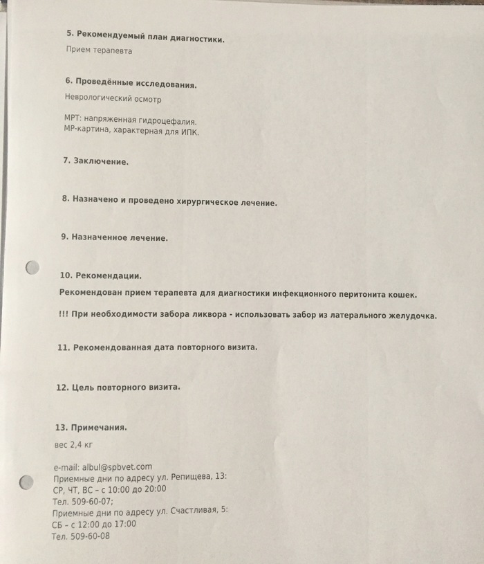 Всем привет! У меня есть кот, подобрал пару лет назад, сбитого, на обочине, без сознания. Сначала он был совсем не очень живым, но после двух недель в стационаре вроде поправился(немного шокирован был от того сколько стоит лечение). После того, как забрал домой, кот понятное дело долго приходил в себя, ходил не очень уверенно, не очень понимал что происходит. Периодически были видны последствия черепно-мозговой травмы(невозможность сконцентрироваться на одном объекте, я так понял, т.к он постоянно провожал взглядом непонятно что с одной стороны в другую и так по кругу(хз как по другому объяснить). Потом окреп и стал более уверенным, есть еще кошка и кот, с котом подружился, с кошкой до сих пор нет. Так вот проблема в том, что после того как он более менее пришел в себя - начал ходить по квартире и просто кричать, сначала было терпимо, потом невыносимо. Купил успокоительные в вет. аптеке - вроде сначала успокаивали, потом какие то нервные срывы бесконтрольные начались, перестали давать таблетки. Прошло какое то время и он стал обычным ленивым котом. Но пару месяцев назад он опять начал ходить из угла в угол и орать, мы уже привыкли, но хочется это изменить, он может несколько часов подряд ходить и кричать, потом дышит как пес, отдохнет 10-20 мин и опять ходит. Если знаете, что делать или к какому конкретно врачу обратиться - подскажите пожалуйста. Учитывая невозможность проверить чисты ли на руку вет. клиники, хотелось бы сразу попасть к нужному специалисту, а не выкинуть много денег на обычные - «У вас отличный кот, спасибо, что показали». Спасибо. Плюсаните пожалуйста, хочется, чтобы Олег перестал переживать)