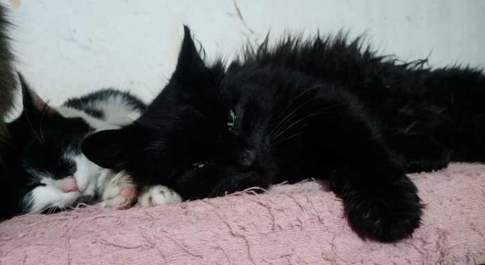 Ходила на кладбище перед Казанской. Среди могил нашла кошечку, на вид месяца 4, и черного кота. С собой был белый хлеб .Малышка на него накинулась .Лихо конечно она была голодная ,кот - тоже ,но не настолько. Пришлось их забрать к себе .Ведь наступают холода ,по ночам заморозки .Уже дома 😸 Кота назвала Лесник(Лесь), а кошечку Патрисия(Пати)