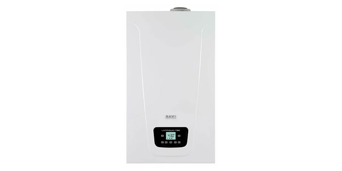 Дальше в рейтинге лучших газовый настенный котёл BAXI Luna Duo-tec E 28 — одну из флагманских моделей в линейке отопительного оборудования итальянского бренда BAXI. Этот агрегат предназначен для эффективного отопления и подготовки горячей воды в помещениях площадью до 280 м². Суммарная тепловая мощность составляет 28 кВт, а КПД достигает впечатляющих 109,8%, что становится возможным благодаря технологии конденсационного сжигания топлива. Расход газа при номинальной нагрузке — около 3,1 м³/ч, что делает модель весьма экономичной в условиях постоянной эксплуатации.