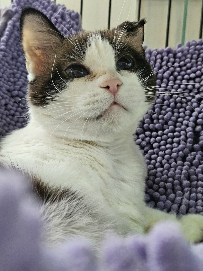 Это котичка Маркиз и у него лейкоз. Он очень трогательный, очень добрый и такой очаровательный котик быстро бы уехал домой, но есть одно Но... И это но-лейкоз и шанс найти коту дом подобен чуду.