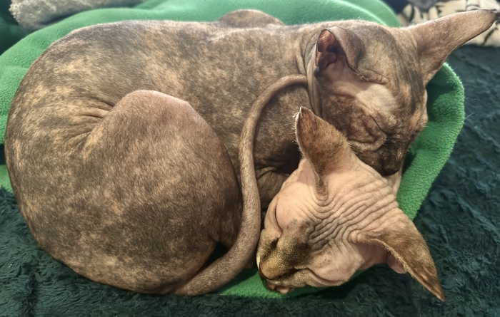 Когда она была совсем маленьким котёнком, её купили или у кого-то взяли какие-то люди. Она помесь то ли с британкой, то ли с шотландской. Что произошло дальше - нам неизвестно. По какой-то причине её начали избивать и морить голодом. Когда ей было 5 или 6 месяцев мой средний сын гулял с друзьями в поле в 2 километрах от деревни и нашел закрытую пластиковую переноску. В переноске сидела она. Тощая, измученная, с отбитой нижней челюстью и с отбитым крестцом. Для тех, кто не понял, поясняю: кошку посадили в переноску и отнесли в поле в 30-градусную жару. Не забыли. Оставили намеренно. Сколько она там просидела - не понятно. Спасла её случайность в виде проходивших мимо подростков. Судьба дала ей второй шанс.