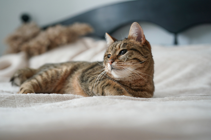 Свободно перемещается в пространстве, кушает, пьет, знает лоточек.