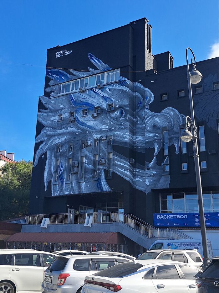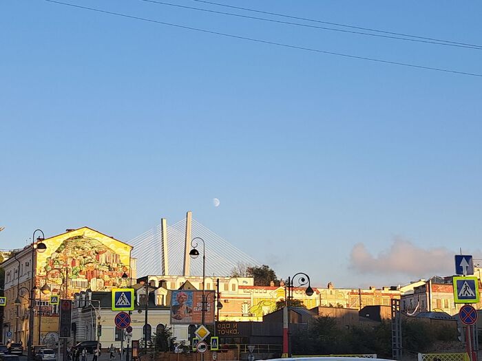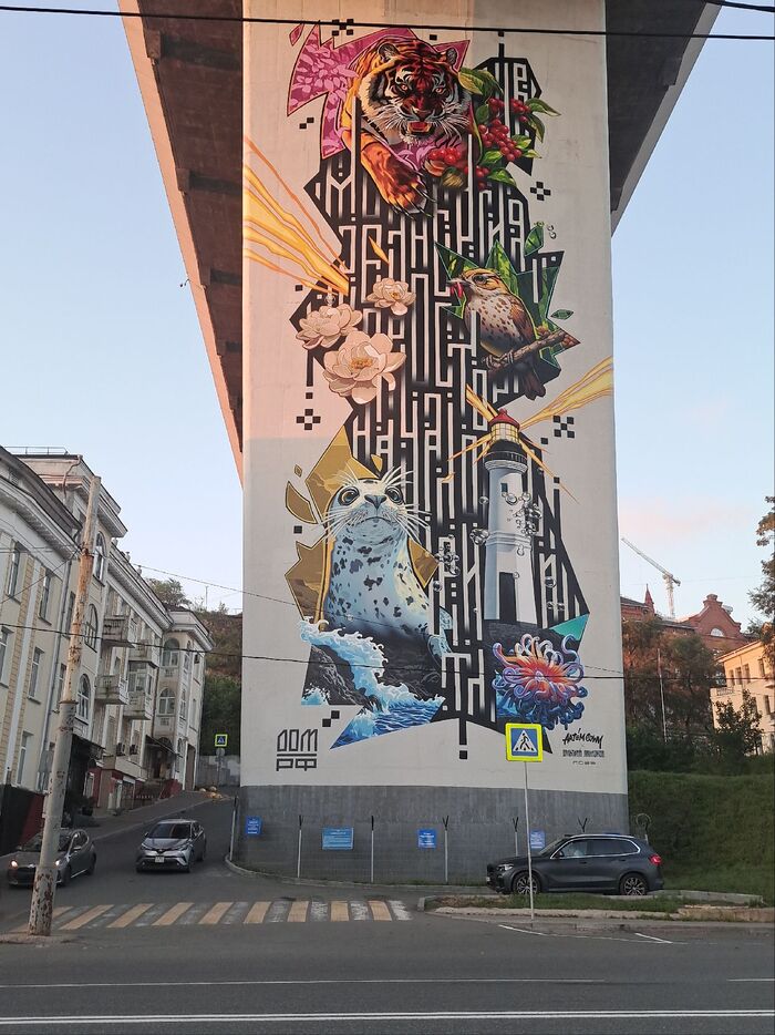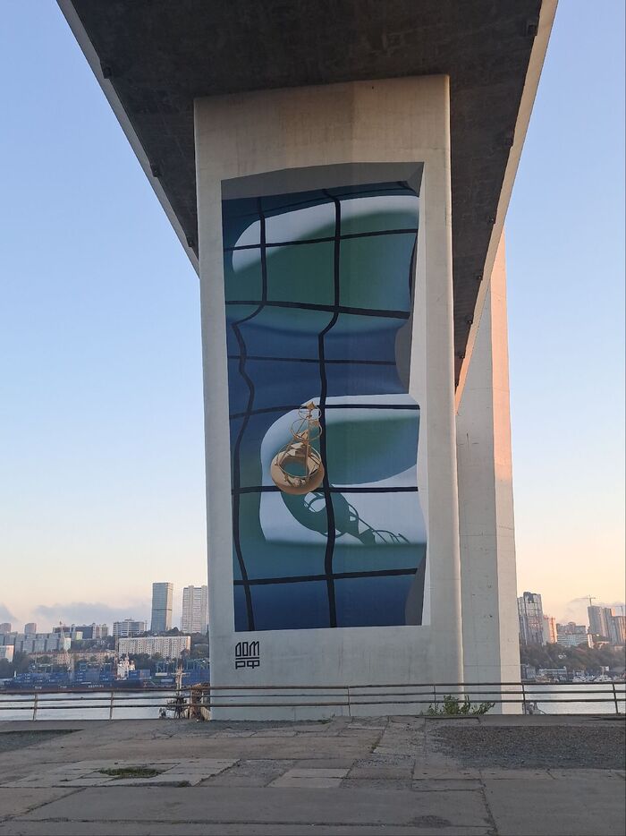 Центр города и новые муралы на опоре Золотого моста