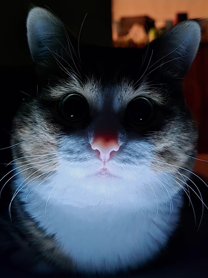 Взгляд кошки после улицы/взгляд кошки спустя год жизни в доме)