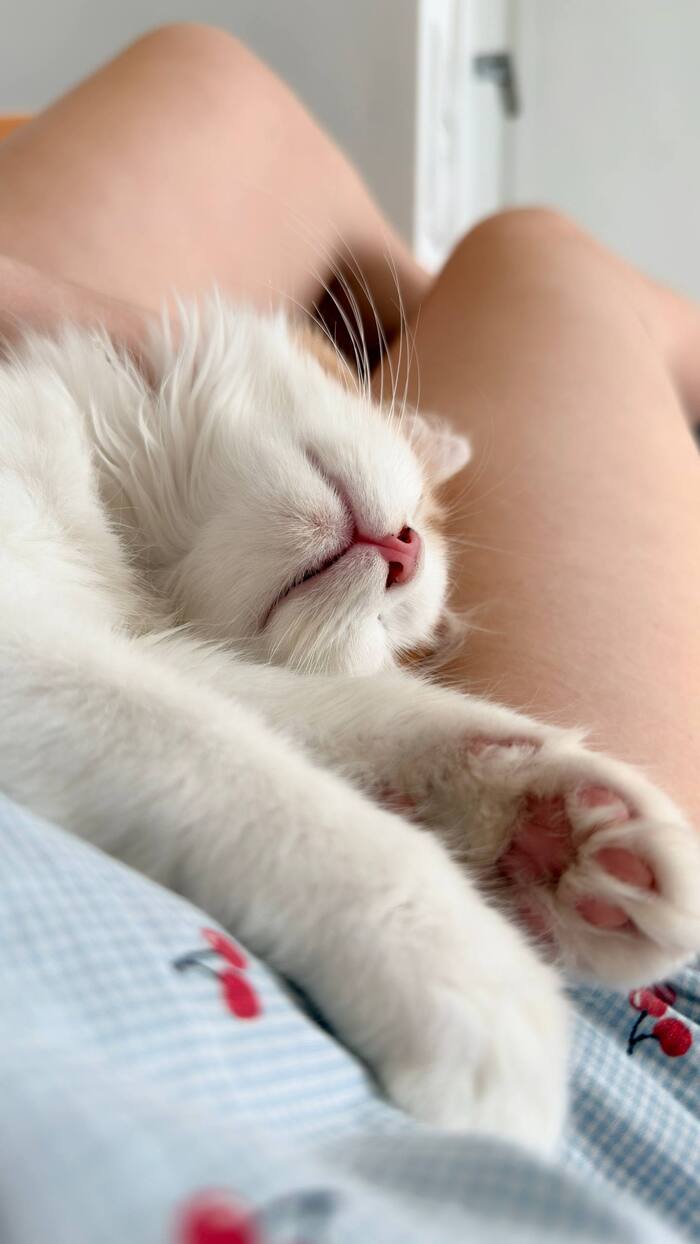 Но может и прийти полежать на груди, мурчать, как трактор, и засыпать, уткнувшись носом в подбородок.