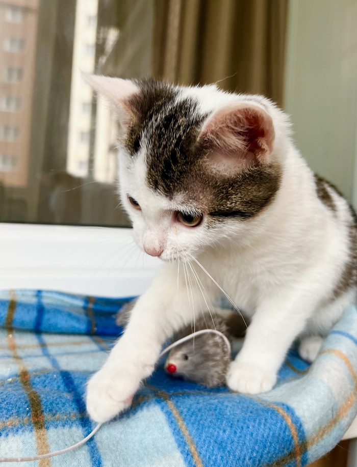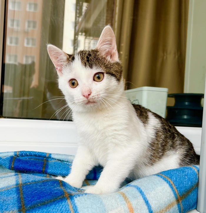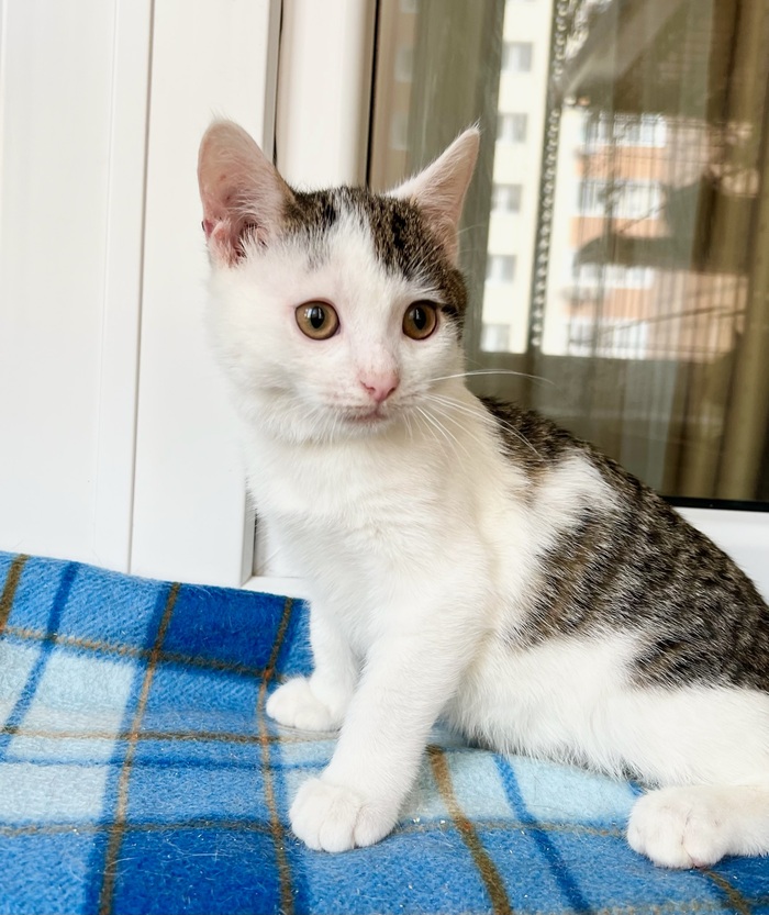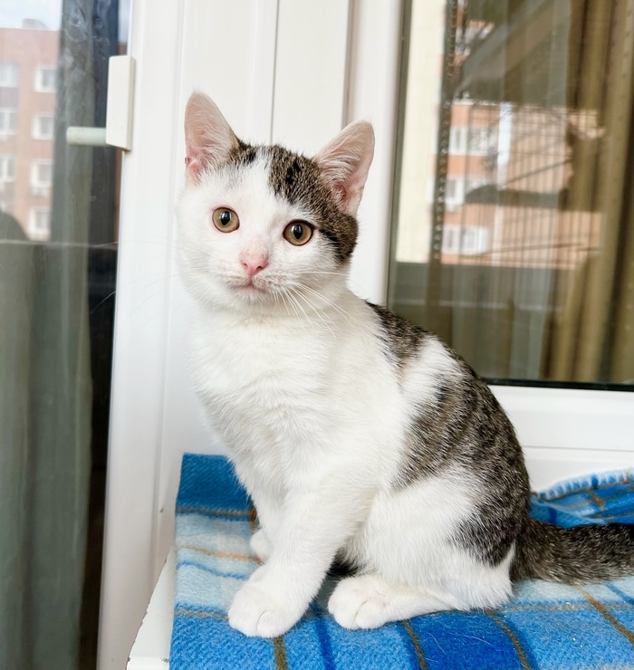 Шикарный глазастый красавец Лазерь в замечательной бело- полосатой шубке. Котенок – праздник. Котенок сплошное умиление. Маленький очаровательный и уютный домосед, очень ласковый, деловитый и умный.