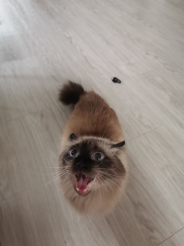 Хвост щеткой, усы веником, шерсть на спине дыбом, косит серым глазом: "Оо-ооо-ууу!"