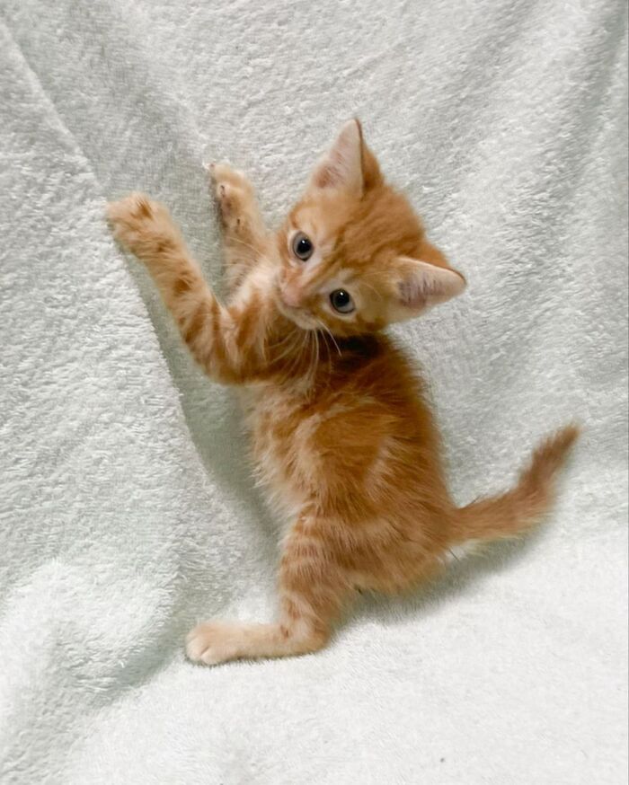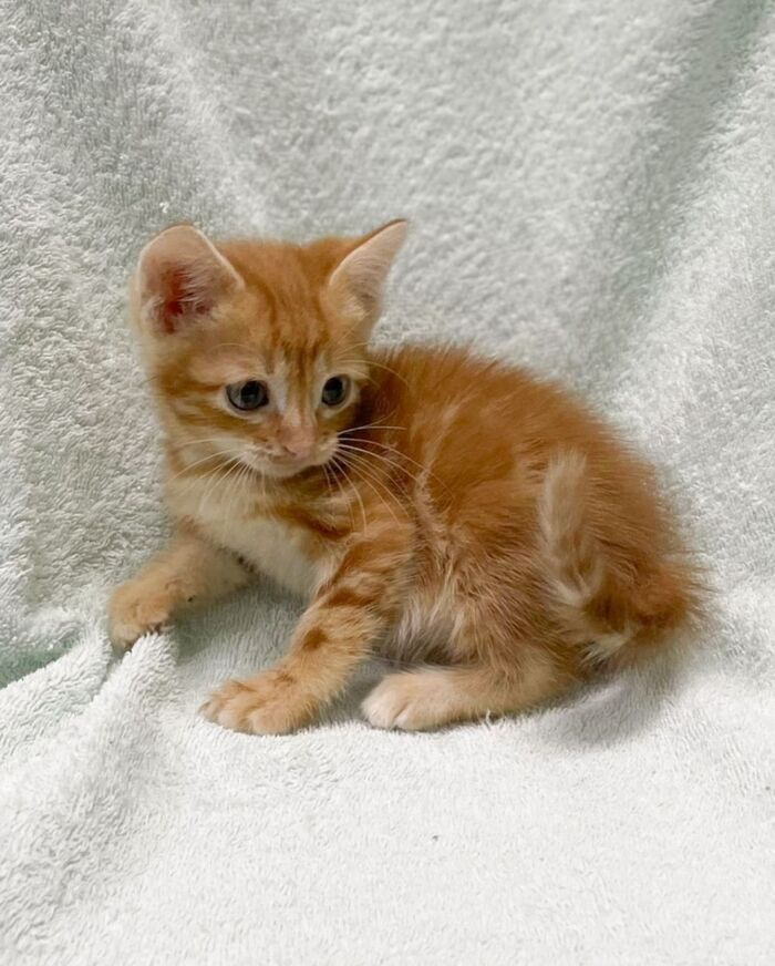 Маленький Фикус, чуть меньше 2-х месяцев. Малыша спасли с улицы вместе с таким же рыжим братиком, сейчас оба котеночка ищут дом.