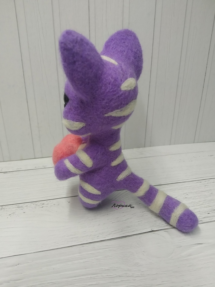 Шерстяной котик методом сухого валяния. Рост котика 13 см.