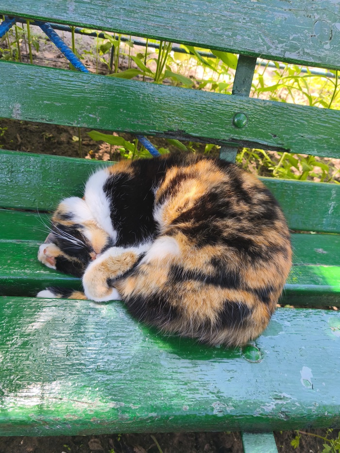 Плюшка. Почти наша кошка, почти, потому что по сути кошечка бабушкой подруги, а когда подруга не на даче, плюшка живёт у нас