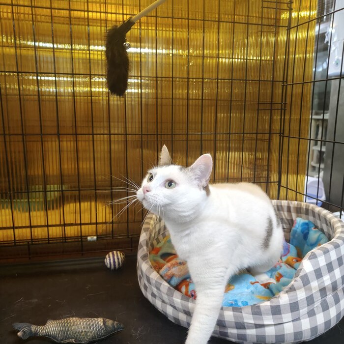 Так Триша и живет в зооцентре на передержке, ей около 4 лет. У неё ВЛК и она принимает постоянно Иссентрес.