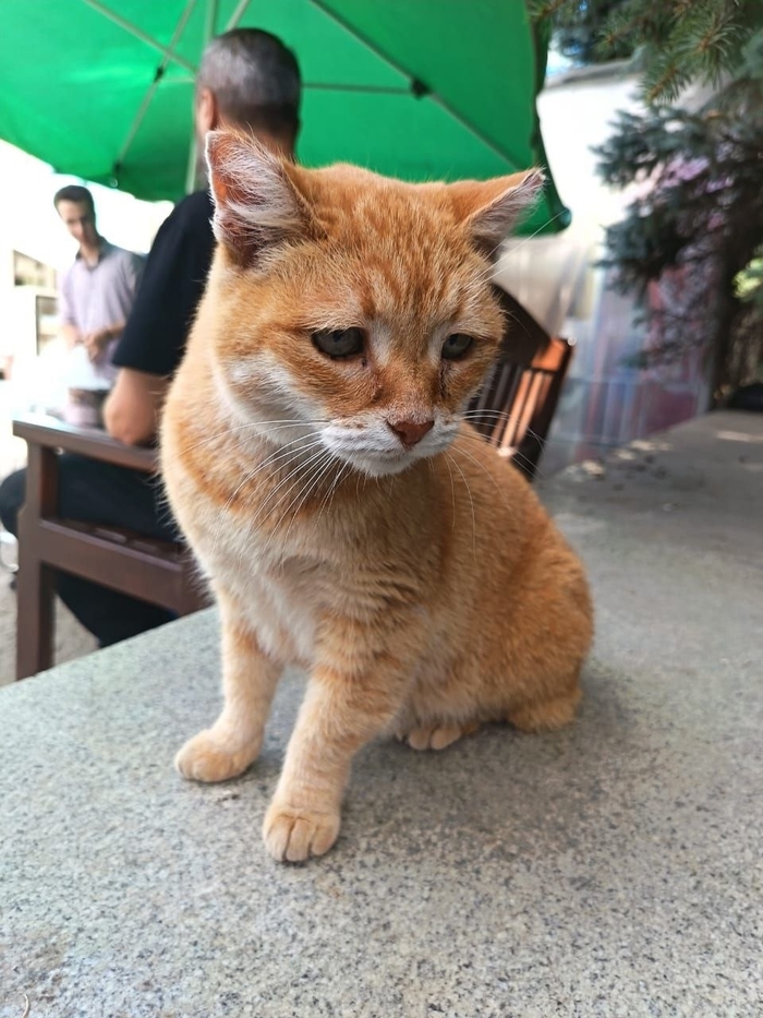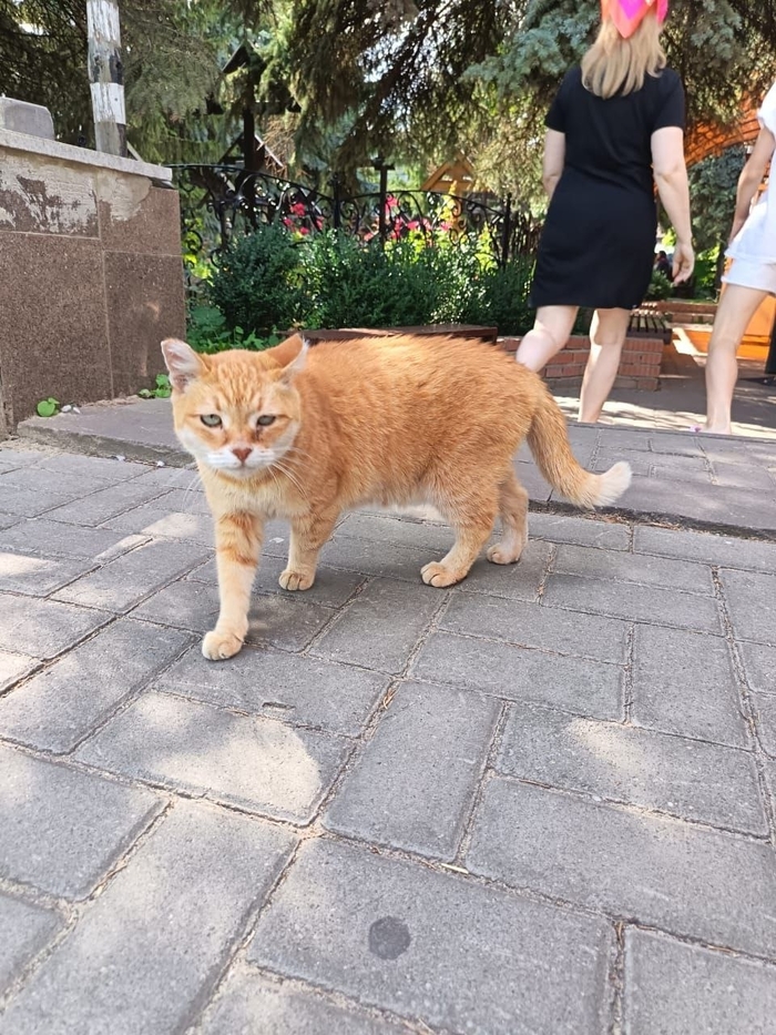 Златочке примерно 14 лет. Эта грустняшка скиталась по территории монастыря и выпрашивала у людей любви, ласки, почесушек за ушком и покушать.
