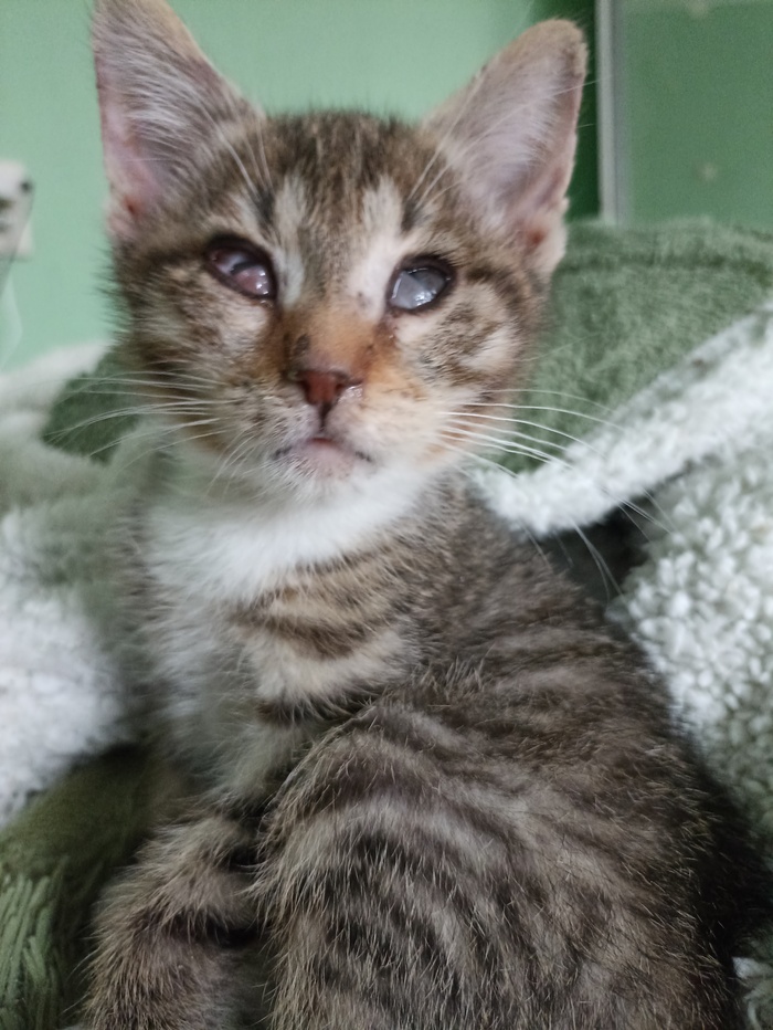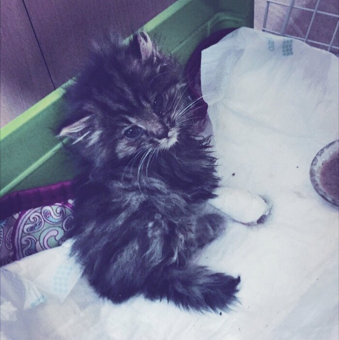 Из семи подкинутых котят выжил он один. Внутреутробная инфекция(. Почти месяц я боролась за котят. Но спасти удалось только его. Но пострадали глазки. Сами глаза спасти удалось. Он видит. Но из за инфекции образовались спайки и заворот третьего века. Убрать это можно только хирургическим путём. И убирать нужно, иначе пострадает роговица глаз.