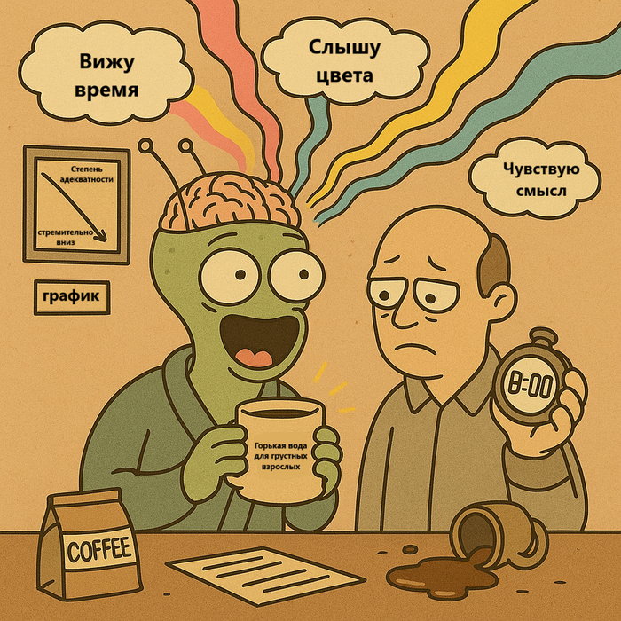 8 минут: Я различаю вкусы фотонов. Вижу траекторию будущего. Слышу цвета. Вижу время. Чувствую смысл.