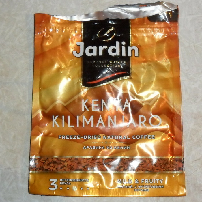 Начну издалека. Сегодня допил кофе растворимый Jardin Kenya Kilimanjaro сублимированный, 75гр. 225 руб. из предыдущей посылки. Я в кофе как свинья в апельсинах разбираюсь, но Jardin мне понравился. Во всяком случае он лучше горького Jacobs и культового на ДВ Maxim коими в Пахачах заставлены прилавки. Купцы везут только то, что покупает рабочий класс и сельская интеллигенция.