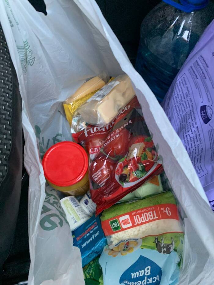 На днях Александр Юрьевич снова получил от членов нашей группы подарки для своих кошек и продуктовую корзину для себя.
