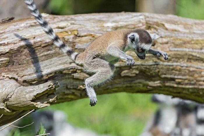 Кошачьи лемуры получили свое название из-за схожих размеров и походки с домашними кошками. Главное украшение мадагаскарского лемура — это его длинный пушистый хвост. Он насчитывает свыше 10 чёрных и белых полос, может достигать в длину более полуметра. Хвост прекрасно подходит для того, чтобы позволить кошачьему лемуру удерживать равновесие, сидя на тонком суку. Играет важную роль и в балансировании прыжков. В социальном поведении полосатому хвосту лемуров отводится большое значение. Если кошачий лемур идёт по земле, он держит хвост вертикально, чтобы быть более заметным.