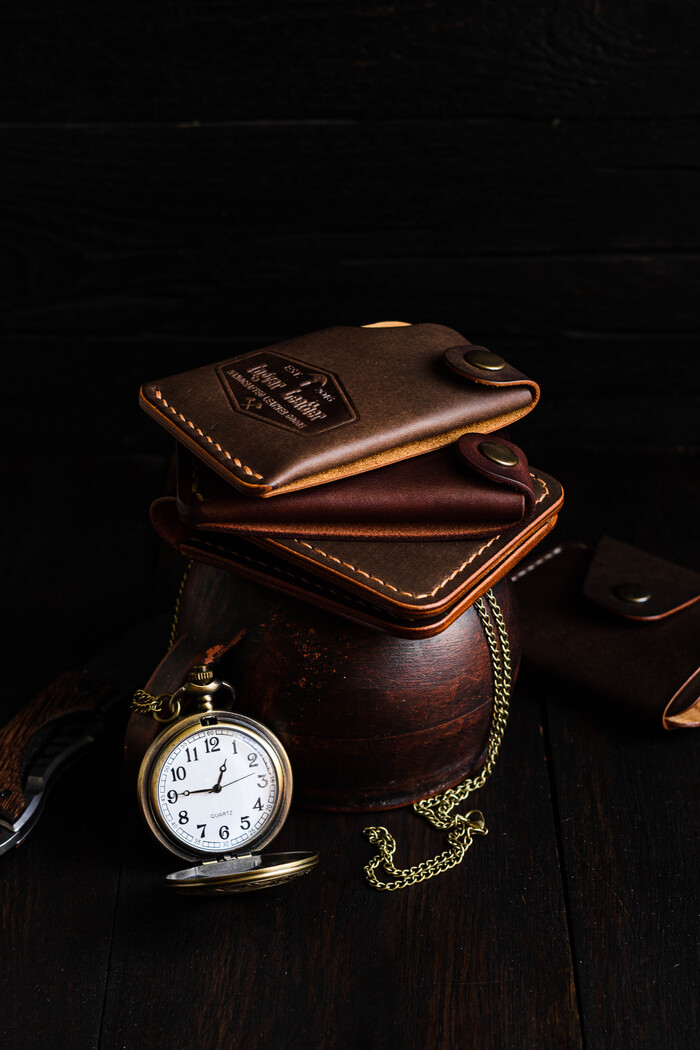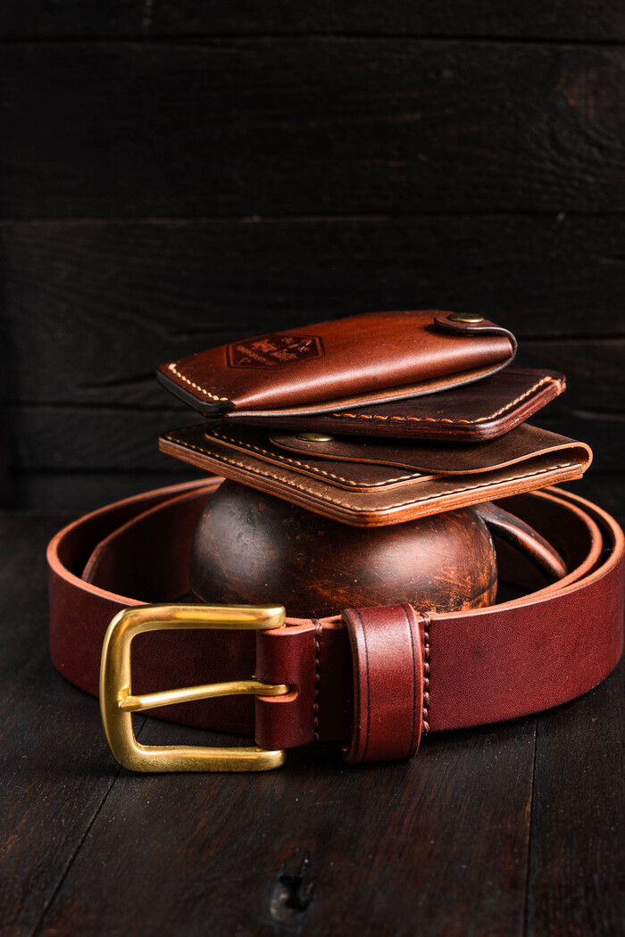 Напоследок, не совсем обычный для меня заказ. Сделал набор ремня, кошелька и еще кое-какой мелочи в деревянной коробке с гравировкой.