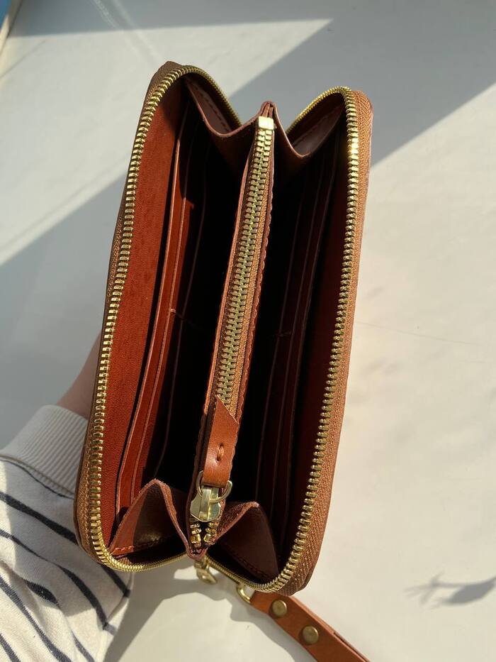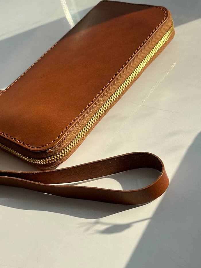 Первый раз пробовал кошелёк с подобной конструкцией делать без колодки для вклейки молнии и так делать нельзя, с колонкой вышло гораздо проще, тем более не великих денег стоит, есть даже такие, на которых каждый угол с разным радиусом, что бы подходила на разные выкройки. В моем случае пришлось перешивать одну сторону, внутренняя и наружная часть сшил криво, разбираться почему не стал, просто переделал. Внутренняя часть собирается легко, самое сложное, на мой взгляд, нормально молнию вклеить и потом все сшить. Кожа buttero на 1,8-2(наружняя сторона)и 1,2-1,4(внутренняя). Наружа изначально была почти песчаного цвета, с помощью жиро-воска затемнил + эликсир для блеска. В зависимости от освещённости, цвет немного меняется, будем считать что не баг, а фича😁 Молния YKK и внутри и снаружи, цена у неё что то около 1000 за метр, на момент покупки, сейчас ещё дороже, но на таком изделии должна быть хорошая, я считаю. На этом всё, спасибо за внимание 😊