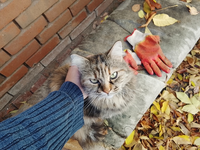 Живёт у меня во дворе кошь. По её взгляду можно понять, что погладить её можно дважды, правой рукой и левой. Дальше уже только культяпками.