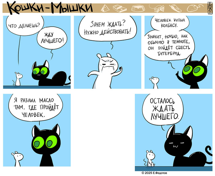 149 Evgenii0017 Комиксы Ждем лучшее 9 месяцев назад Кошки-Мышки в ТГ [моё] Комиксы Кошки-мышки (комикс) Юмор Кот Telegram (ссылка) 6 6 1 Ещё 0