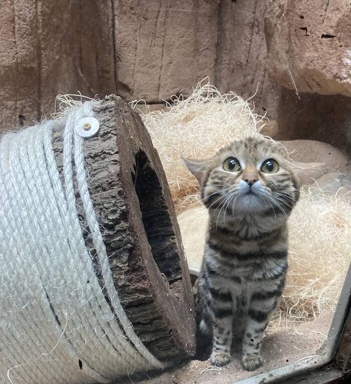 Пятнышки у котят ирбиса — это пока сплошные круги, «закрашенные» внутри. С возрастом рисунок пятен изменится и превратиться в знаменитые «розетки» снежных барсов.