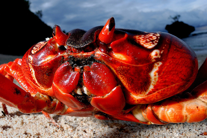 Итак знакомьтесь: виновник нашего сегодняшнего выпуска – красный краб с острова Рождества (Gecarcoidea natalis). Этот довольно крупный краб (панцирь превышает в ширину одиннадцать сантиметров) является эндемиком острова Рождества и ещё одного соседнего островка.