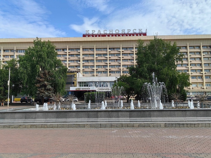 Раньше на этом месте был фонтан «Реки Сибири» - центральный каскадный фонтан города Красноярск, который представляет собой сложную композицию из бронзы и мрамора. Он был официально открыт в 2005 году, а до 2008 года здесь появились все его восемь знаменитых статуй. Его длина составляла около 20 метров. Многоуровневый фонтан украшали двухметровые статуи семи нимф, которые символизировали малые реки Красноярска, и огромная скульптура батюшки Енисея, высотой три метра и весом 850 килограмм. Она символизировала самую полноводную и большую реку Восточной Сибири - Енисей. Вроде как после завершения строительства подземной парковки и реконструкции Театральной площади, фонтан должен вернуться на место.