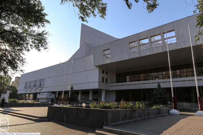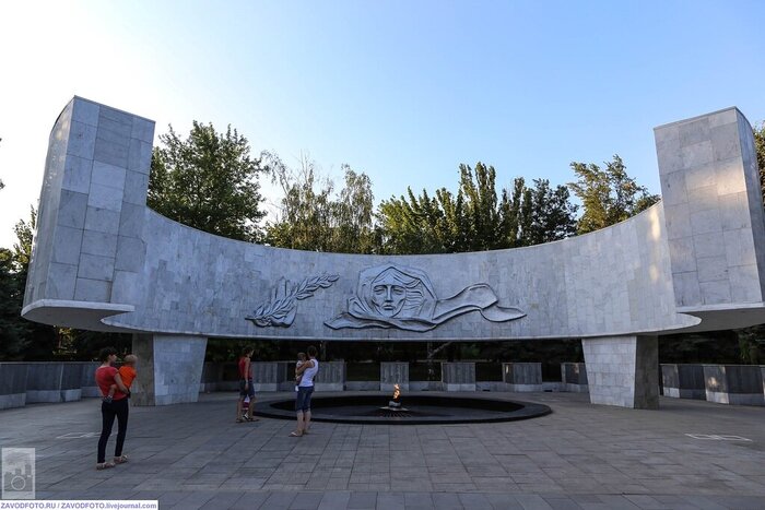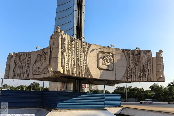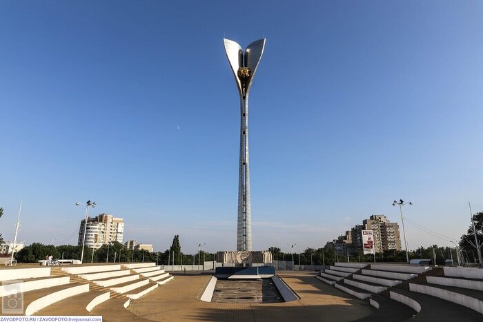 Театральная площадь. "Стелла" - это Мемориал «Воинам за освобождение города от немецко-фашистских захватчиков». Высота "Стеллы" составляет 72 метра и была установлена на Театральной площади к 40-летию победы в Великой Отечественной Войне. Орден и статуя богини "Ники", венчающие "Стеллу" были изготовлены из меди и покрыты тонким слоем сусального золота.