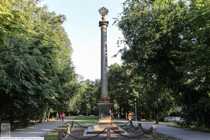 Монумент в память 25-летия славного царствования императора Александра II выполнен в виде 11-ти метрового шпиля с гербом Российской империи на верхушке.