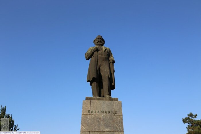 Площадь Карла Маркса. Бронзовый памятник основоположнику научного коммунизма, учителю международного пролетариата Карлу Марксу.